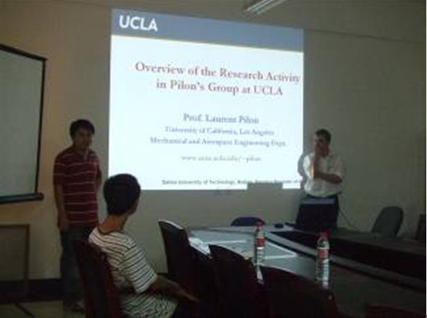 。在讲座中Laurent Pilon教授从目前的能源利用出发,介绍了他和他的团队在这几年所做的一些主要研究方向以及研究进展,讲座内容涉及表面活性剂自组装的多孔材料、热电材料采集废热