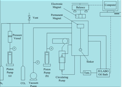 Rubotherm magnetic suspension balance. In the laboratory simulating the CO2 geological storage conditions in the temperature and pressure range 303-423K ,10-20Mpa, the